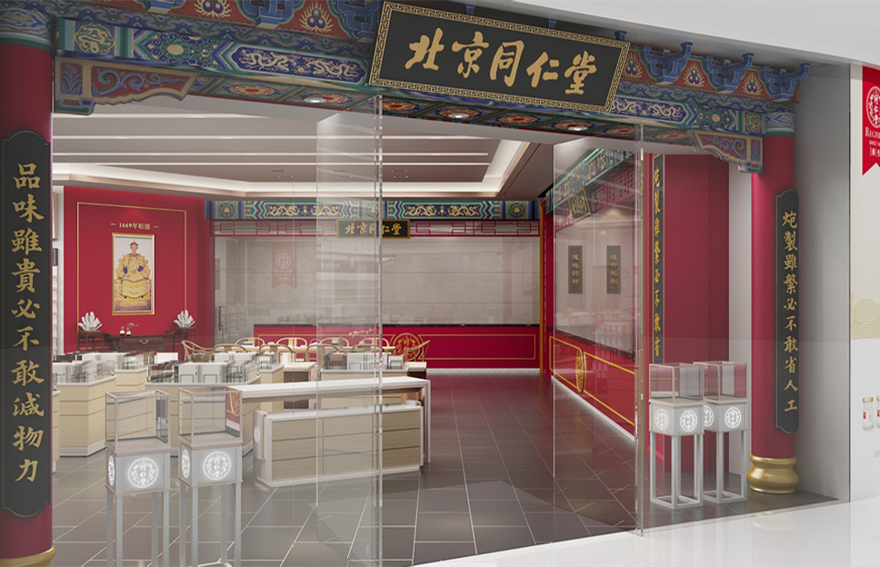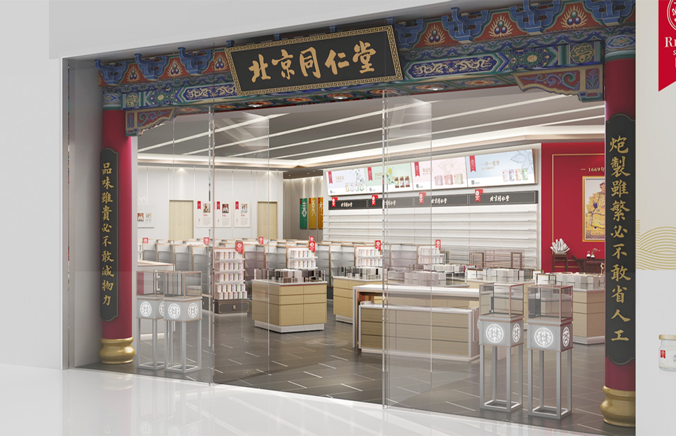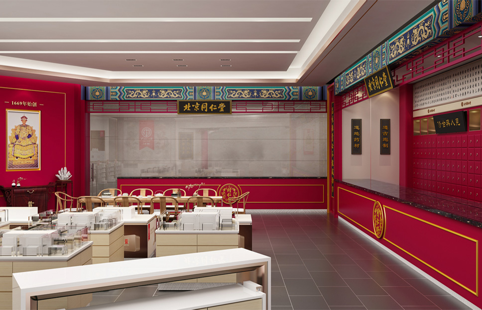 在定位設(shè)計(jì)北京同仁堂專柜形象之前,我們做了深入細(xì)致的市場(chǎng)調(diào)研,同時(shí)對(duì)同仁堂的文化進(jìn)行了系統(tǒng)研究,尋根溯源,找到了同仁堂文化的根源,即儒家“仁義”文化。同仁堂創(chuàng)始人為樂顯揚(yáng),樂族姓氏源于官位,出自西周初期官吏大樂正,負(fù)責(zé)整個(gè)王朝的禮教之事。而儒家文化的核心是“禮樂仁義”,李華清項(xiàng)目團(tuán)隊(duì)在同仁堂原有的文化基礎(chǔ)上加上了“禮樂”,使同仁堂文化更系統(tǒng)完整,同時(shí)把藥店空間設(shè)計(jì)專柜系列命名為“禮器之重”。