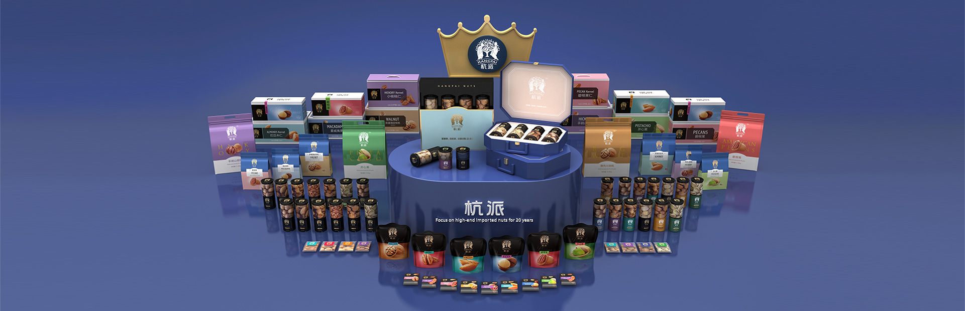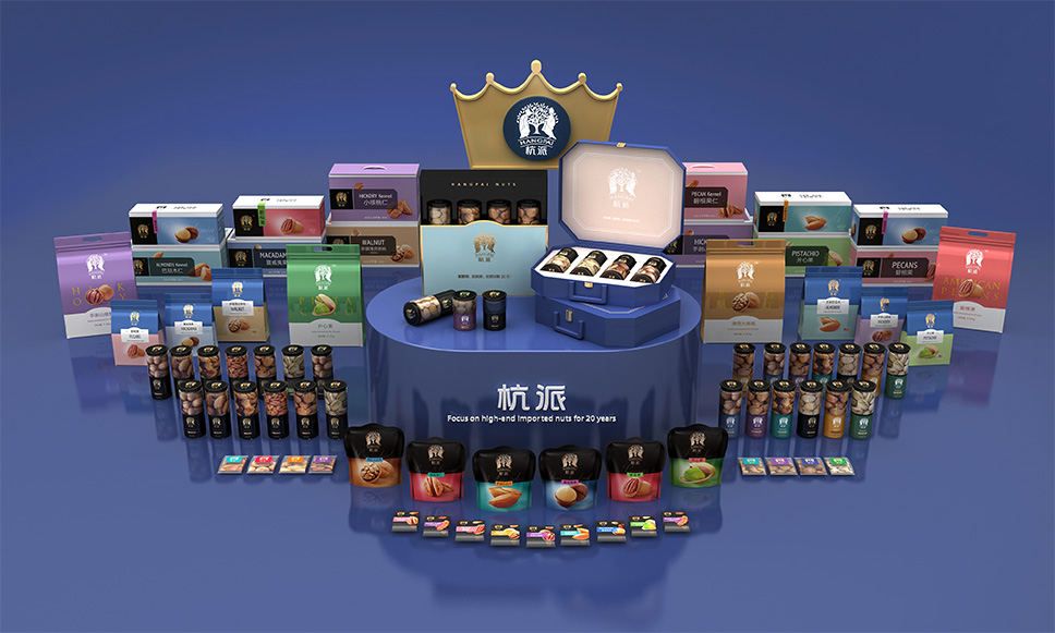 堅守杭派不可復制的產(chǎn)品力,以20年堅果行業(yè)先驅(qū)者和領導者的身份進軍零售市場。突出全球化概念,打造全球化堅果品牌形象,用數(shù)字突出品牌的實力和專業(yè),具有鮮明識別性和記憶點。為未來杭派打造世界堅果文化戰(zhàn)略目標做鋪墊。