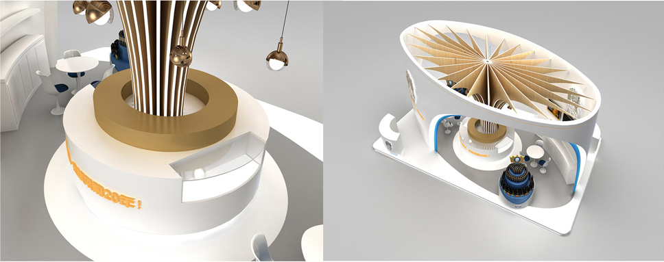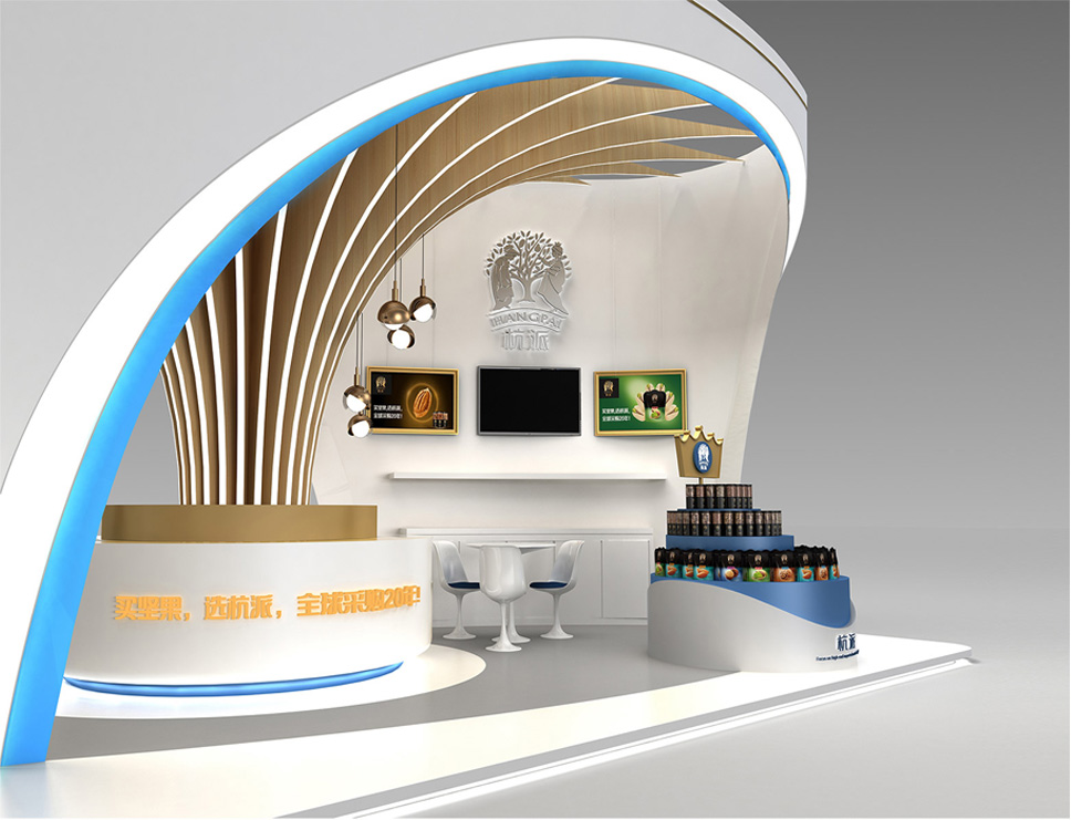 李華清空間設計公司定位的杭派展位形象延續(xù)品牌形象靈魂,堅果樹的造型具有行業(yè)屬性特征和很強的辨識度,橢圓的主造型與堅果產(chǎn)品本身的造型相契合,獨特的發(fā)光樹造型展示臺和堅果創(chuàng)意吊燈,既寓意繁茂的盛景,又使空間設計增加了意境和豐富視覺感。色彩系統(tǒng)采用了木質(zhì)、白和藍色搭配,現(xiàn)代簡約的調(diào)性使展位設計整體清新雅致。現(xiàn)場造型吸引了大批消費者,加深了品牌認知,構(gòu)建了杭派高端休閑食品的品牌形象。