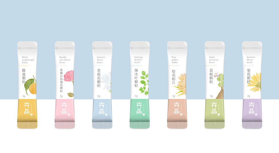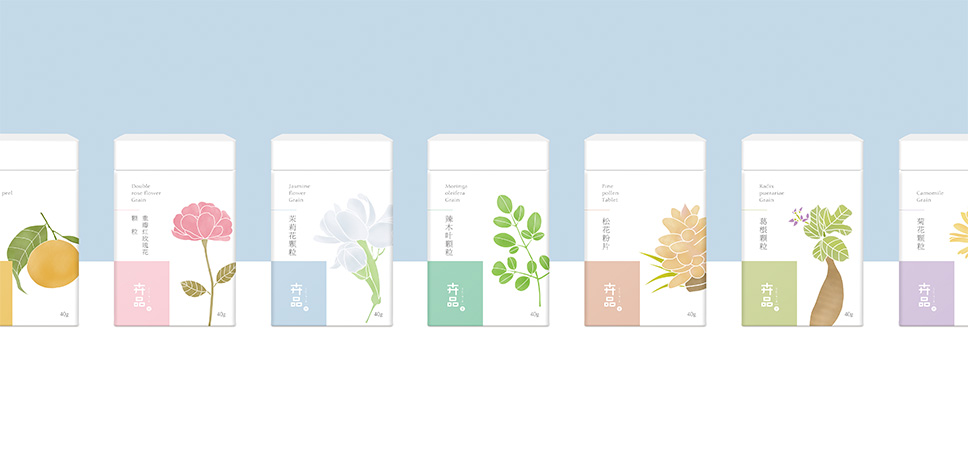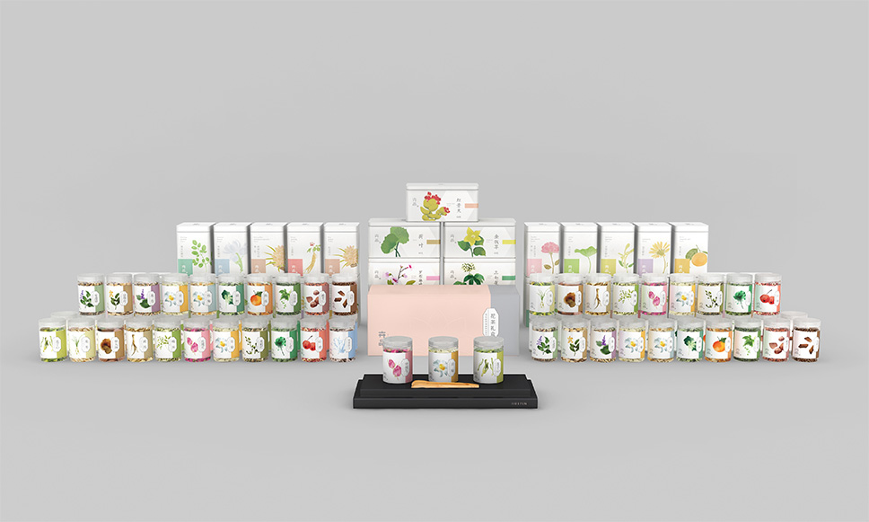李華清圍繞由品牌理念所推導(dǎo)出的價(jià)值主張視覺化內(nèi)容,也就是自然養(yǎng)生的概念元素。運(yùn)用水彩插畫的風(fēng)格,繪制出產(chǎn)品使用的形態(tài)。花朵在水中搖曳的唯美瞬間,化為紙上慢慢暈開的筆墨,猶如產(chǎn)品溫和滋潤我們的身心。唯美、溫潤,散發(fā)著清新的自然之味。傳遞出產(chǎn)品精致的氣質(zhì),詮釋出植物茶飲的自然清新,為傳統(tǒng)茶飲注入新鮮活力。