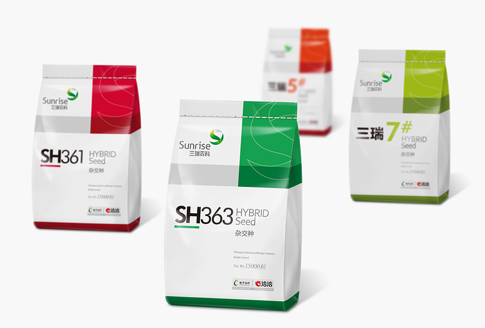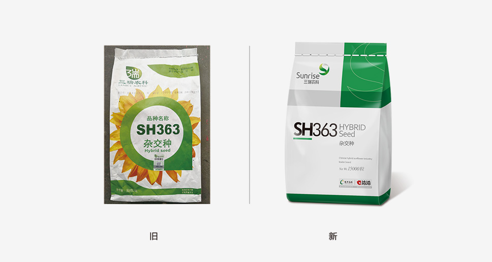 優(yōu)質(zhì)食葵品種SH363、SH363等在新疆三瑞已經(jīng)穩(wěn)定經(jīng)營(yíng)了十幾年,深受消費(fèi)者信任,產(chǎn)品型號(hào)已經(jīng)成為企業(yè)的重要資產(chǎn),無(wú)疑產(chǎn)品型號(hào)是整個(gè)畫面中最關(guān)鍵的信息,李華清運(yùn)用黃金比例法則,將產(chǎn)品型號(hào)作為位置商標(biāo)在整個(gè)畫面的最佳位置排布,從而達(dá)到有效識(shí)別.