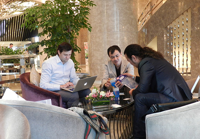應(yīng)俄羅斯圣彼得堡,羅塞爾公司Sergey Shalimov先生邀請(qǐng),李華清先生和新加坡負(fù)責(zé)人Jackie Tan,于2012年3月28日在上海新天哈瓦那酒店與Sergey Shalimov先生就品牌改造項(xiàng)目進(jìn)行了會(huì)晤溝通。